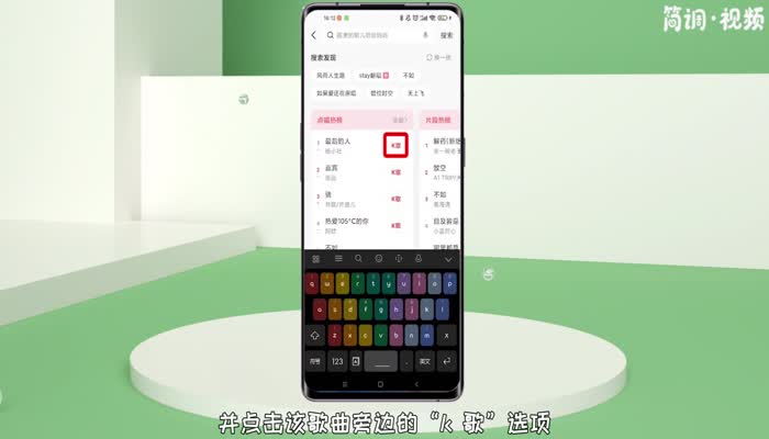 1.打开全民k歌,找到一首你想要k歌的歌曲,点击歌曲旁边的“k歌”选项;