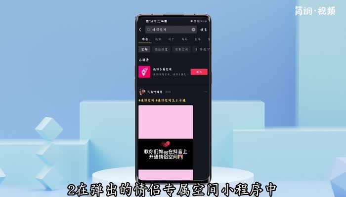 1.输入Tik Tok,在搜索栏输入“情侣空间”,点击搜索;