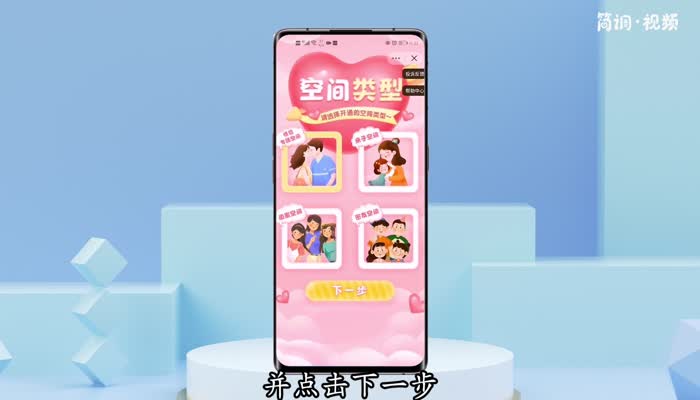 3.进入后,在空间类型中点击“情侣专属空间”,点击“下一步”;