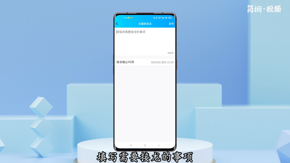 3.点击创建选项,填写“电话号码”等需要接龙的项目,选择截止日期,点击右上角发布,将接龙发布到群聊中;