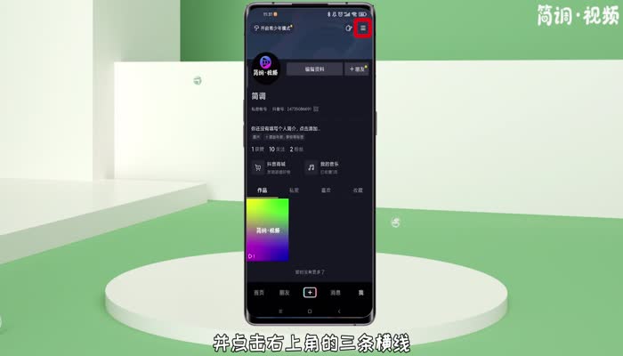 1.打开Tik Tok,切换到“我”界面,点击右上角的三条水平线;