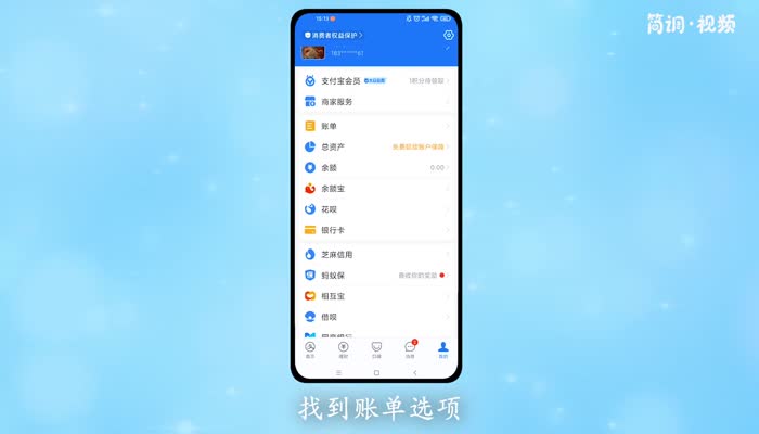 2.在“我的”页面,找到“账单”选项,点击进入,弹出所有账单信息;