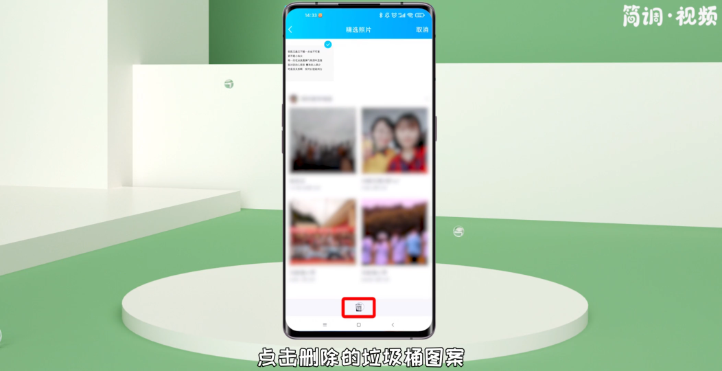 4.勾选要删除的照片,点击删除的垃圾桶图案,然后点击确定,删除数据墙照片。