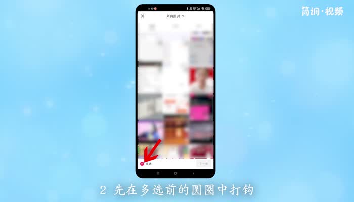 2.先在“多选”前打勾,然后选择要制作的图片,选择后点击“下一步”;