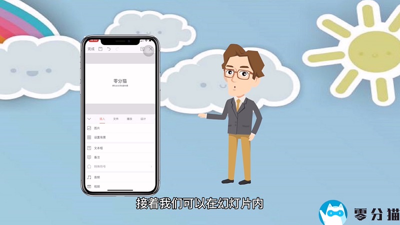 7.然后我们可以在幻灯片中插入我们需要的东西,比如图片,音频等等。