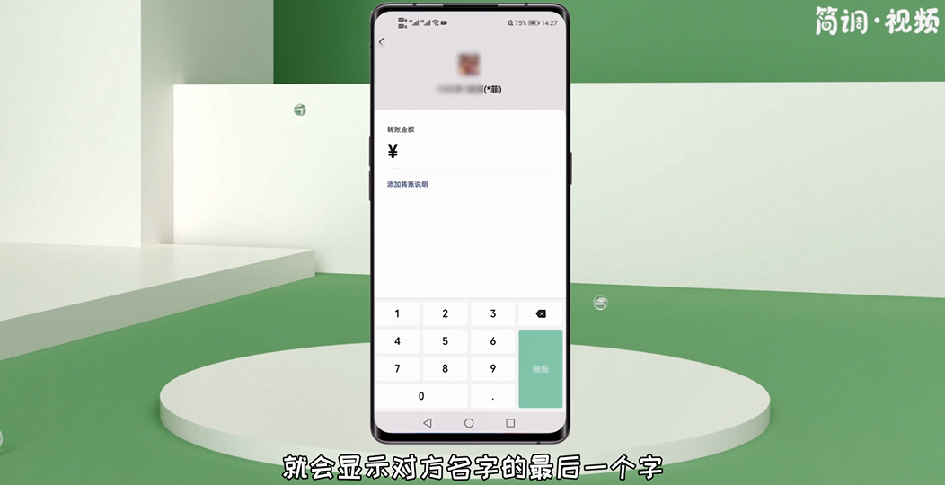 3.在转账页面中,对方名字的最后一个字会显示在我们给对方备注的右括号中。