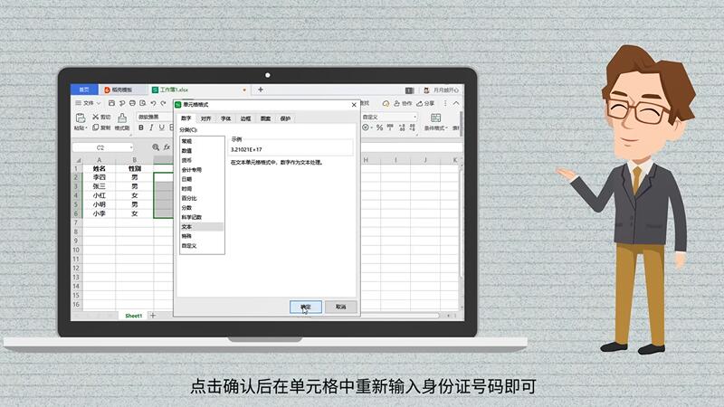 3.在弹出窗口中选择“文本”,单击确定,然后在单元格中重新输入ID号。