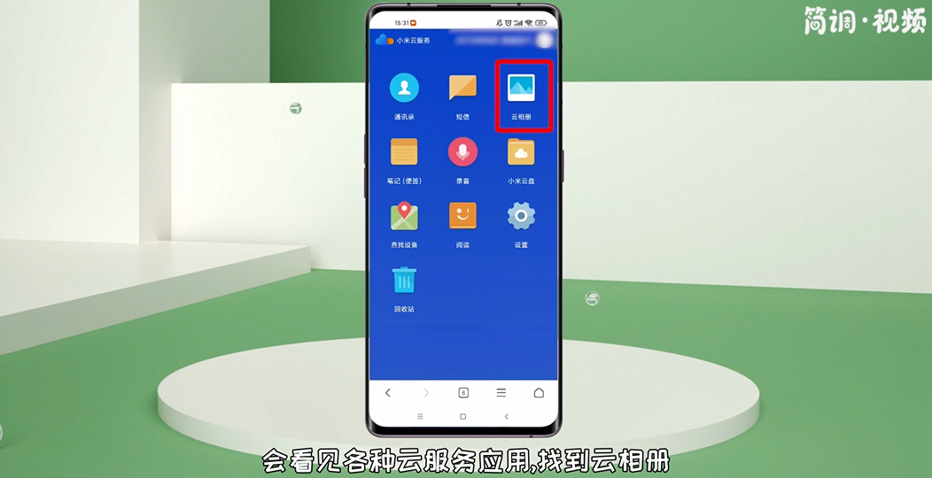 进入云服务页面后,会看到各种云服务应用,找到云相册,点击进入就可以看到保存的相册。