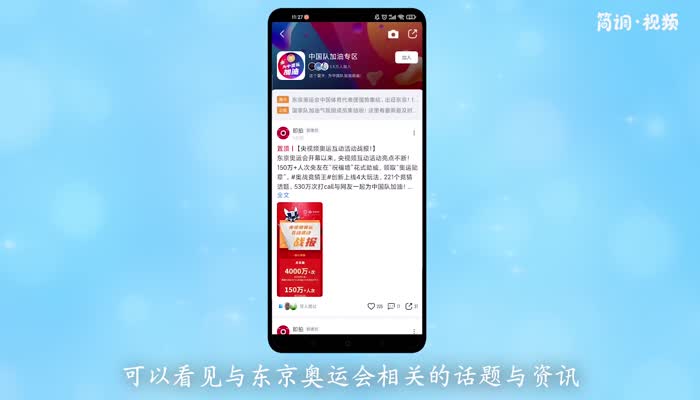 3.点击进入“谈奥运”界面,可以看到与东京奥运会相关的话题和信息;