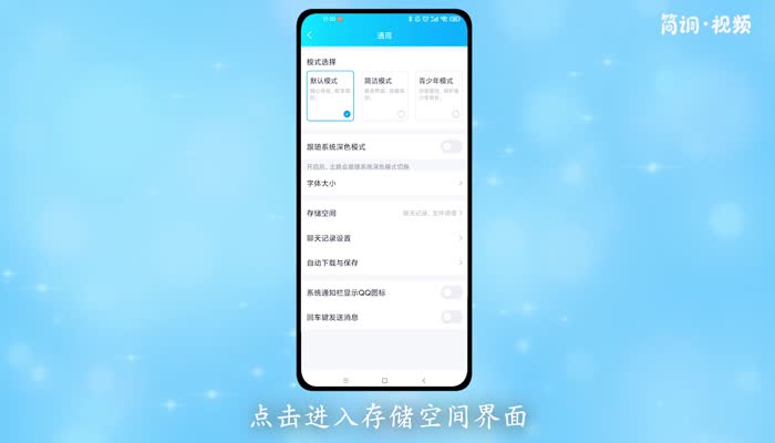 2.在通用界面,点击进入“存储空间”界面;