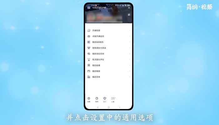 1.打开手机qq,向右滑动屏幕,点击“设置”中的“通用”选项;
