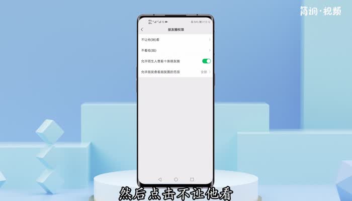 3.点击“朋友圈”选项进入朋友圈权限页面,然后点击“不要让他看到”;