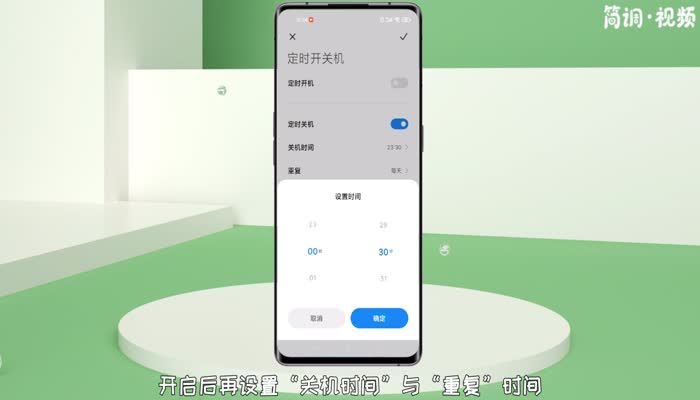 开机后,设置“关机时间”和“重复”时间,最后点击右上角的“”。