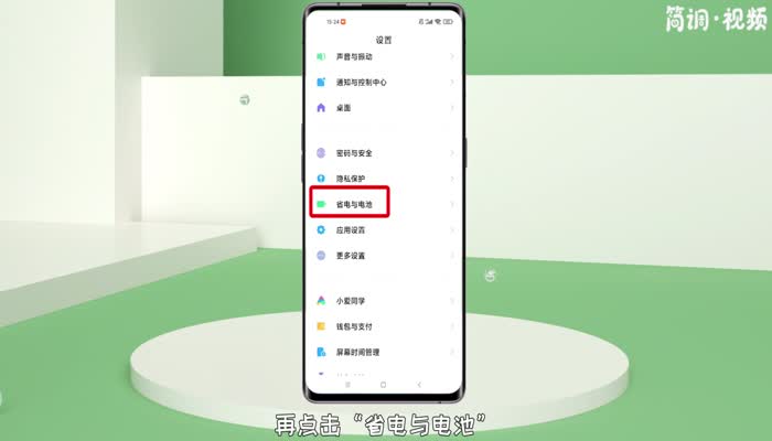 打开手机,点击“设置”,然后点击“省电和电池”,切换到“电池”界面;