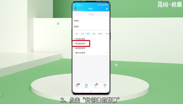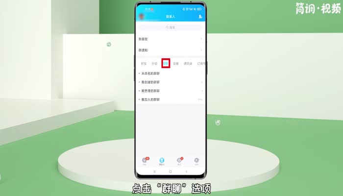 1.打开手机qq,切换到“联系人”界面,点击“群聊”选项;