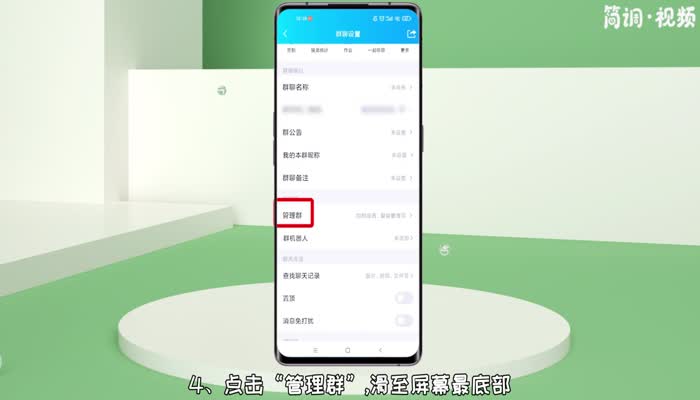 4.点击“管理群”,滑动到屏幕下方,点击“转移群”,然后选择转移群的好友,点击“确定”。