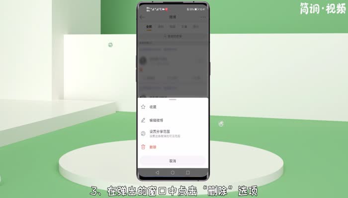 温馨提示:在网页中登录微博,或点击下拉箭头符号选择删除。