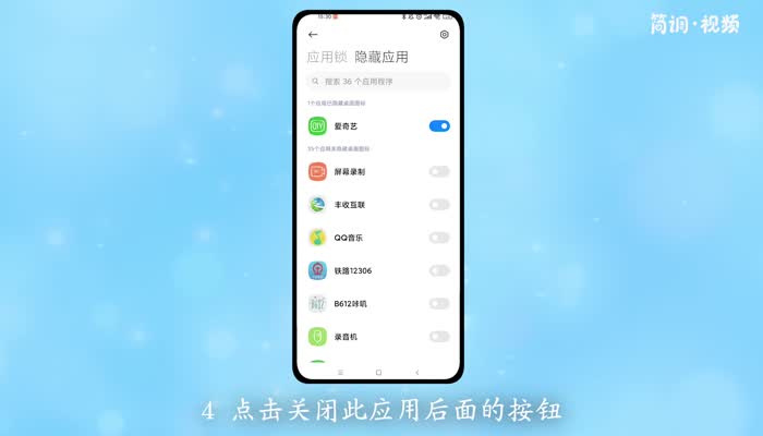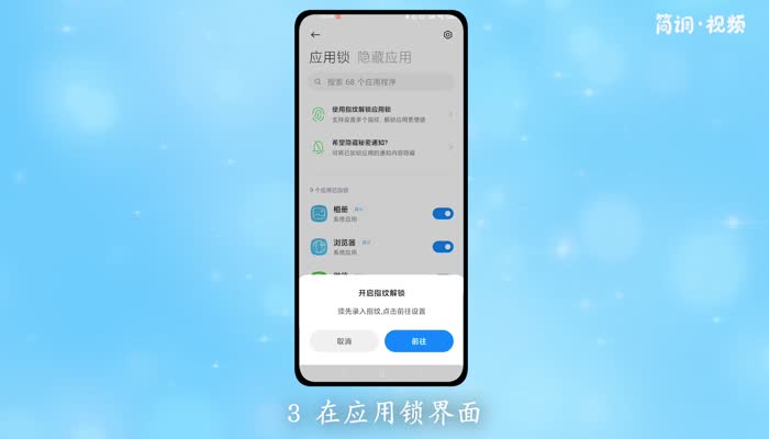 3.在应用锁定界面,点击“隐藏应用”选项,找到需要取消隐藏的应用;