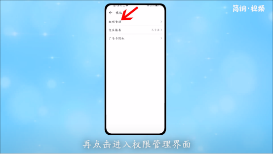 2.在设置界面,点击“隐私”选项,然后点击进入“权限管理”界面;