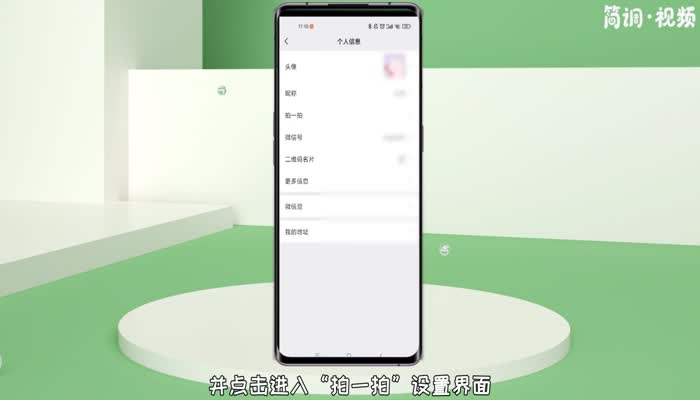 2.在个人信息界面,找到“拍一拍”选项,点击进入“拍一拍”设置界面;