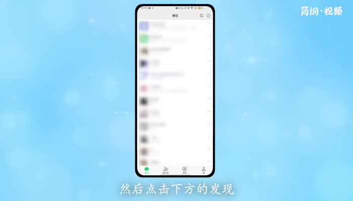 1.在手机桌面打开微信,然后点击下面的“发现”;