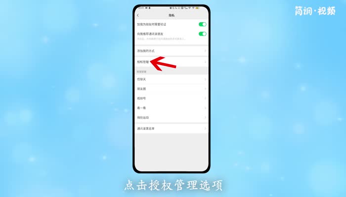 4.进入隐私设置页面后,点击“授权管理”选项;