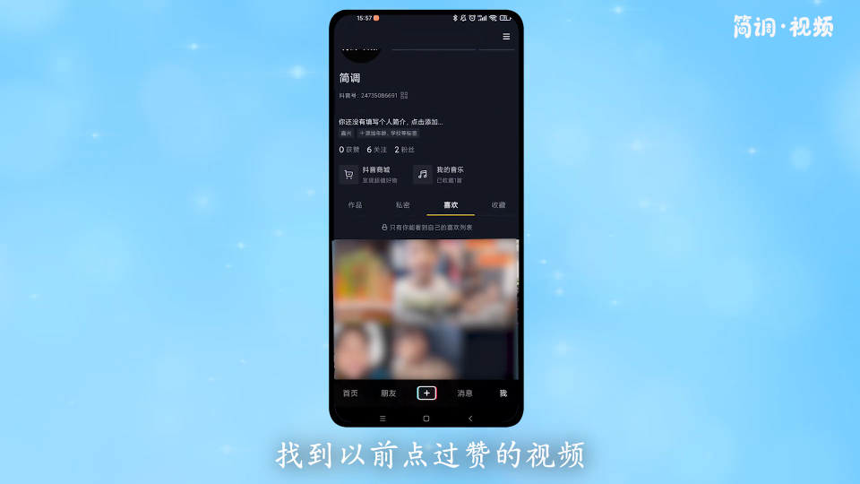 2.进入“赞”界面,找到之前被赞过的视频。进入后,点击头像下方的“”标志,再次关注。