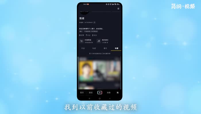 3.进入“收藏”界面,找到之前收藏的视频,点击头像下方的“”标志,再次关注;