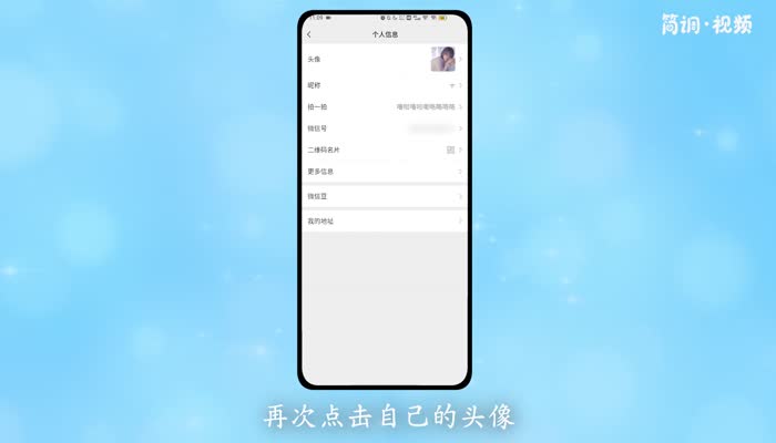 3.进入个人信息页面后,再次点击自己的头像;