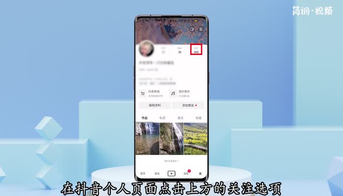 3.点击Tik Tok个人页面顶部的“关注”选项,进入关注列表;