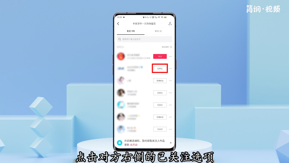 要从列表中删除朋友,Tik Tok只需取消对方的关注。具体操作步骤如下: