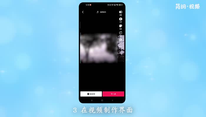 2.点击“专辑”选项,找到之前作品的视频,然后点击下一步,进入视频制作界面;