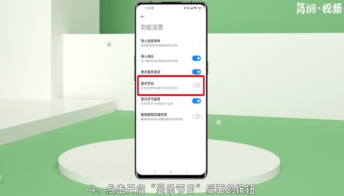 小米的日历不显示日期。可能是“秀节”功能已经关闭了。进入日历功能设置界面,打开即可。具体操作步骤如下: