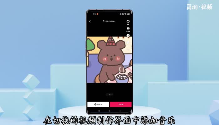 3.在切换后的视频制作界面中,添加音乐、文字、特效等。完成后点击“下一步”;