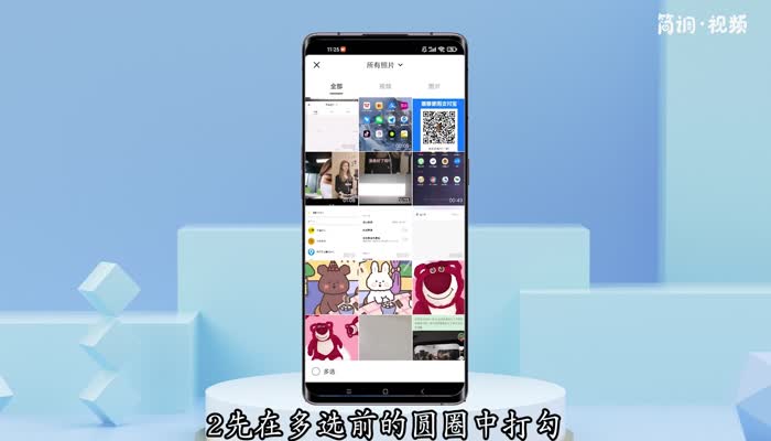 2.先在“多选”前打勾,然后选择三张图片,选中后点击“下一步”;