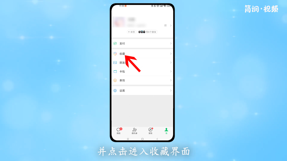 1.打开微信,切换到“我”界面,点击进入“收藏”界面;