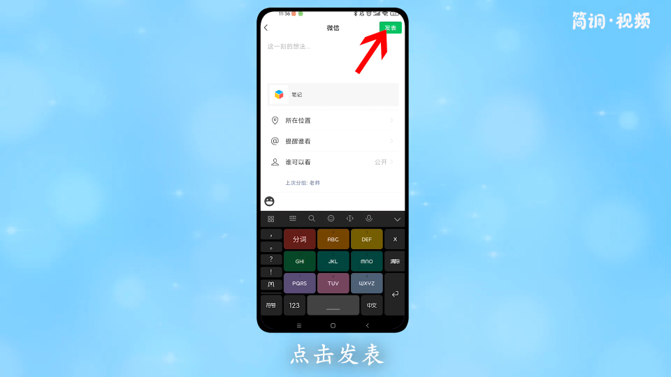 5.在填写好标题和设置好访问权限后,点击“发布”即可在朋友圈上传视频的原画质。