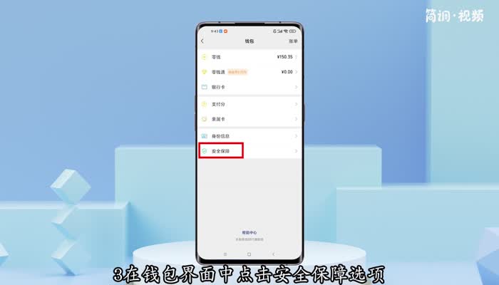 3.在“钱包”界面,点击“安全”选项,可以看到一些受保护的安全选项;
