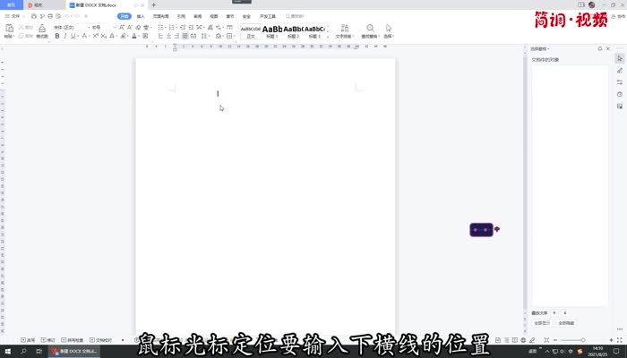 1.打开WPS文档,定位鼠标光标,输入下横线的位置;