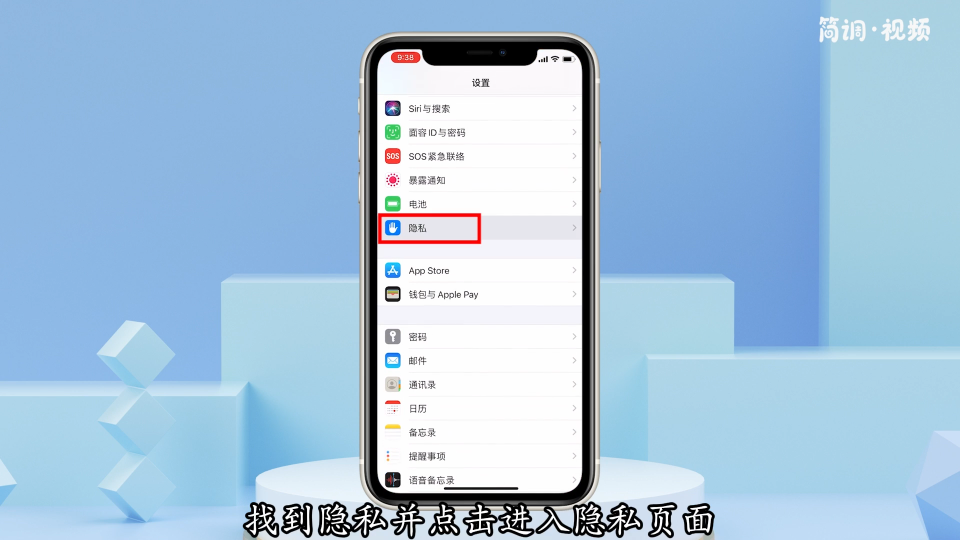 2.进入设置页面后,找到“隐私”,点击进入隐私页面;