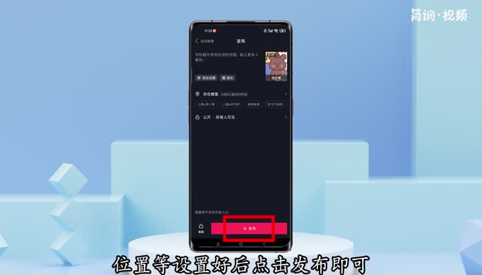 4.您可以添加主题、位置等。在弹出的界面中。设置完成后,点击“发布”。