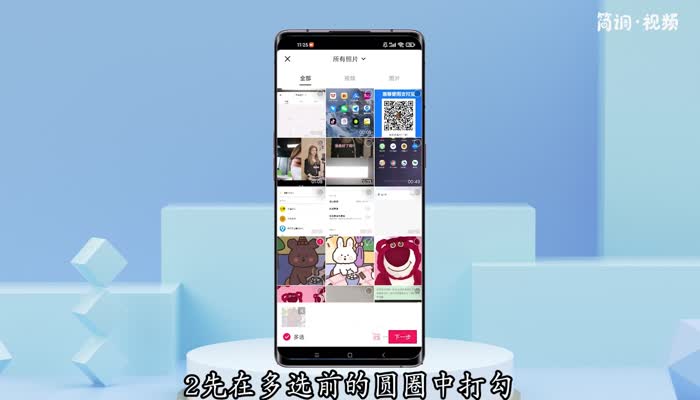 2.先在“多选”前打勾,再选择一些图片,然后点击“下一步”;