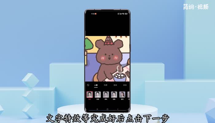3.在切换后的视频制作界面中,可以添加音乐、文字、特效等。完成后,单击“下一步”;