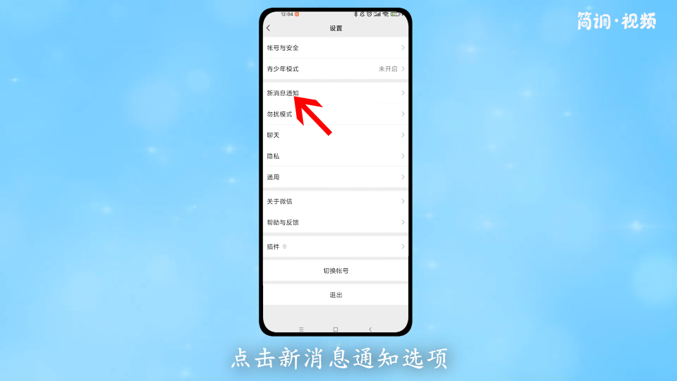 2.在设置界面,点击“新消息通知”选项,设置消息通知;