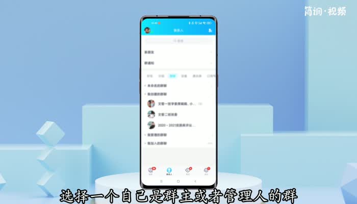 1.打开手机qq,在群聊界面,选择一个你是群主或者管理员的群,点击进入群界面;