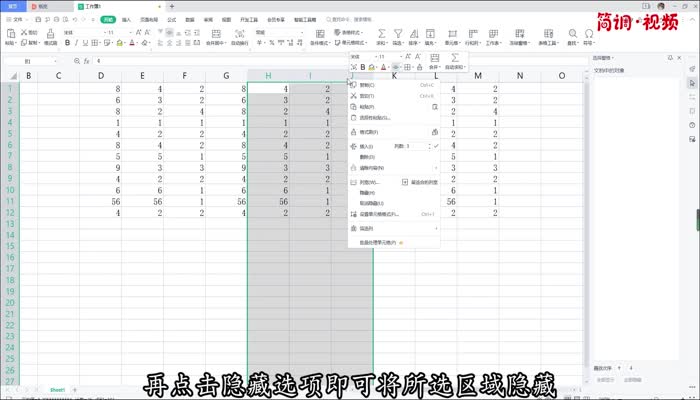 3.选择后,右键单击所选区域,然后单击隐藏选项隐藏所选区域。