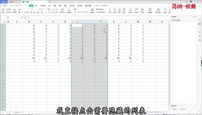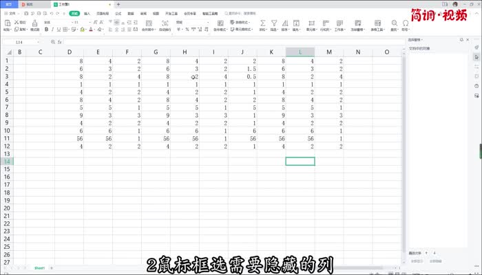 在excel表格中,如果要批量隐藏列,可以框选多个单元格,然后隐藏。具体操作步骤如下: