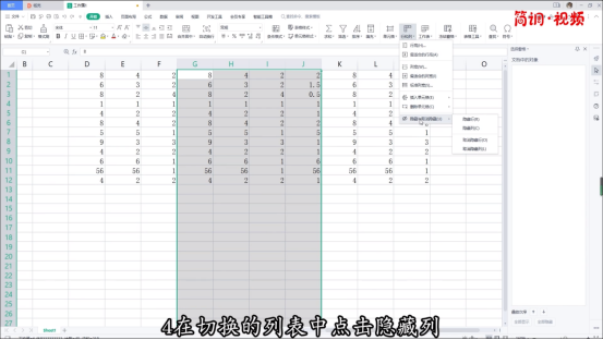 2.在鼠标框中选择要隐藏的列,或者直接点击要隐藏的列表;
