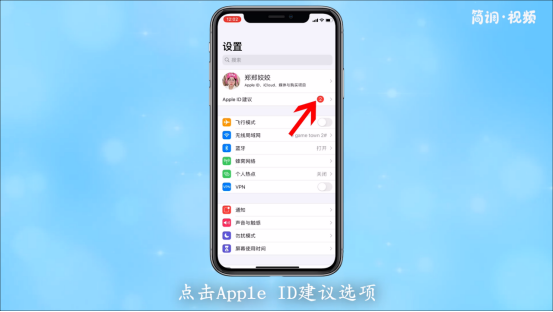 2.进入后,点击“Apple ID建议”选项,然后点击页面上的“备份设置”;