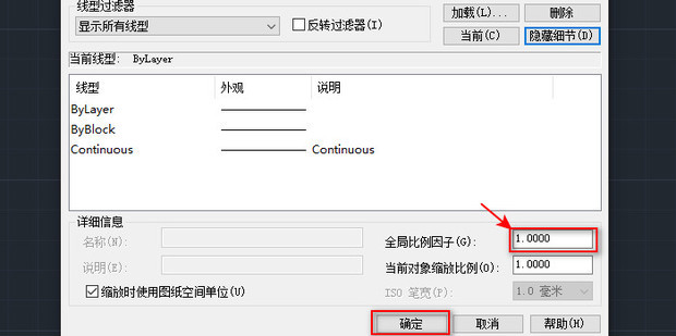 - 在这里就可以修改全局比例因子,修改完成后点击确定即可。